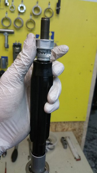 Nach der Anlieferung Ihrer Gabel wird diese zerlegt, inspiziert, defekte Teile getauscht und wieder mit qualitativ hochwertigen Ersatz-/Verschleißteilen und Ölen/Fetten montiert.