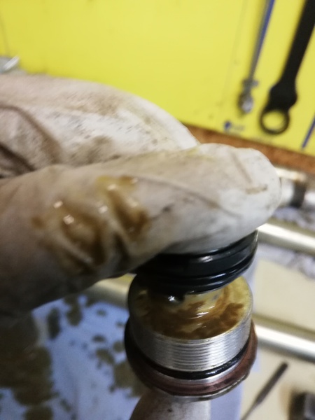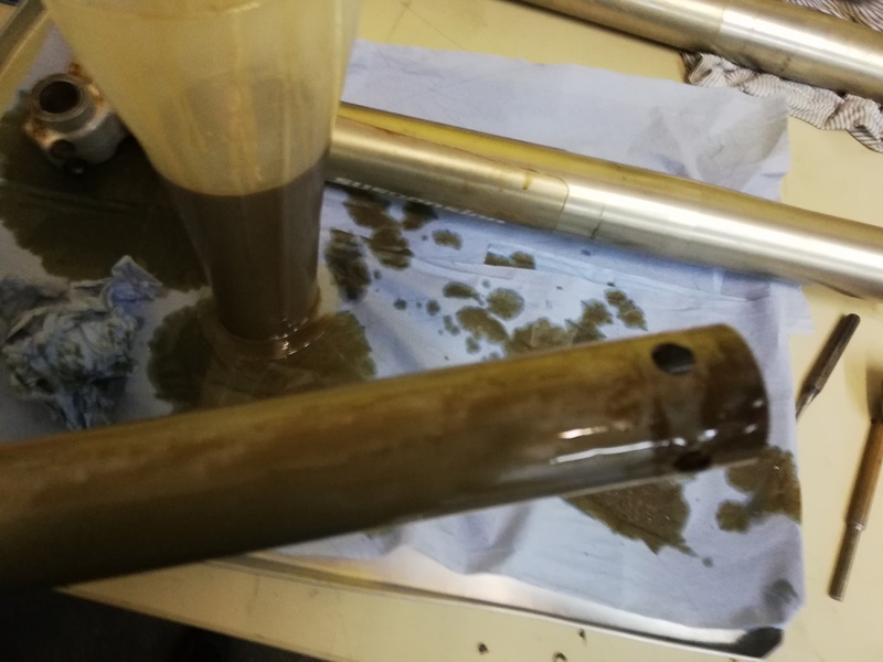 Natürlich wird bei Closed Cartridge Gabeln auch das Öl der Cartridge mit getauscht.